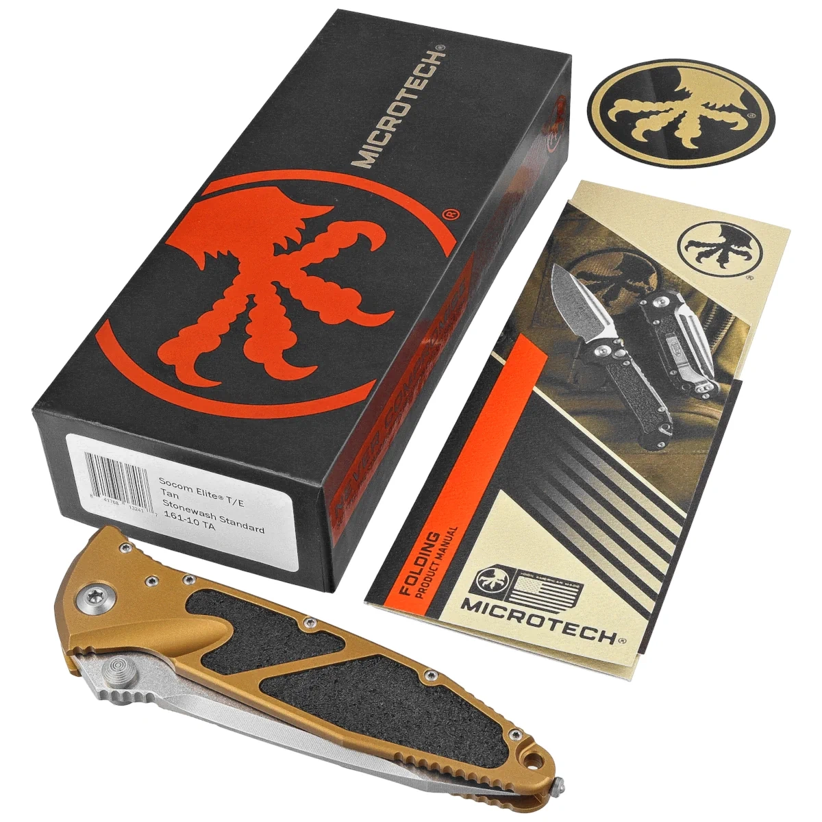 Nóż składany Microtech Socom Elite T/E-M Tan Aluminium, Stonewashed M390MK by Tony Marfione (161-10TA)