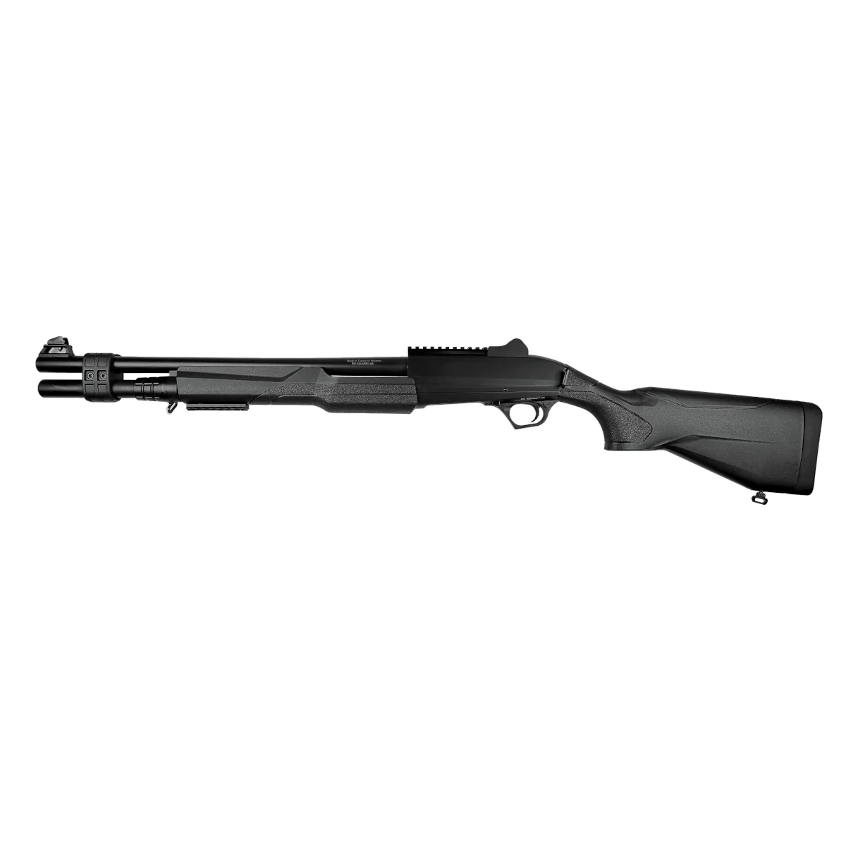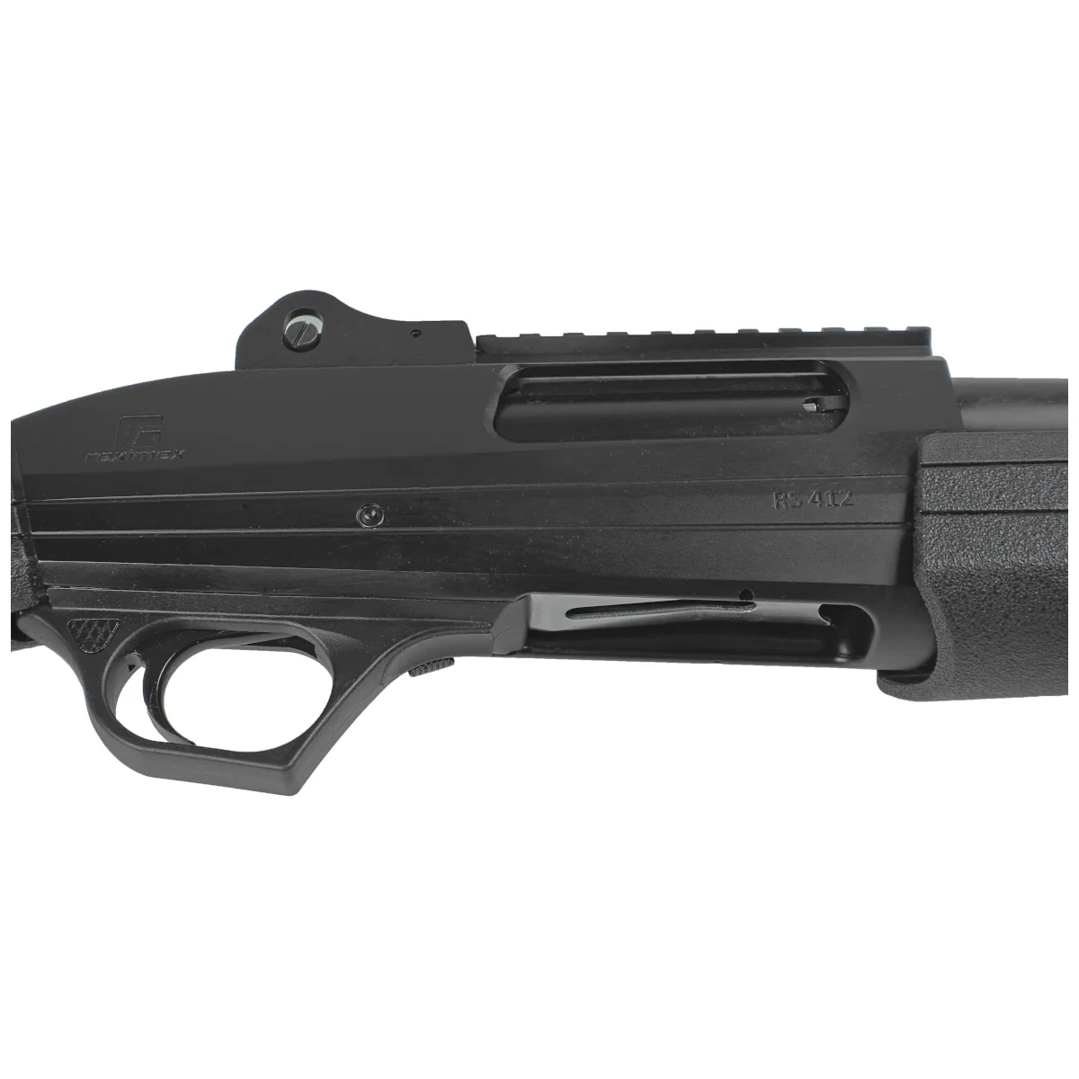 • Reximex RS412 HD Black 20" w kalibrze 12/76, gładkolufowa taktyczna strzelba powtarzalna w wersji Home Defence, wyposażona w stałe taktyczne przyrządy celownicze, 2 szyny Picatinny 22 mm oraz mocowania do pasa jedno- lub dwupunktowego.