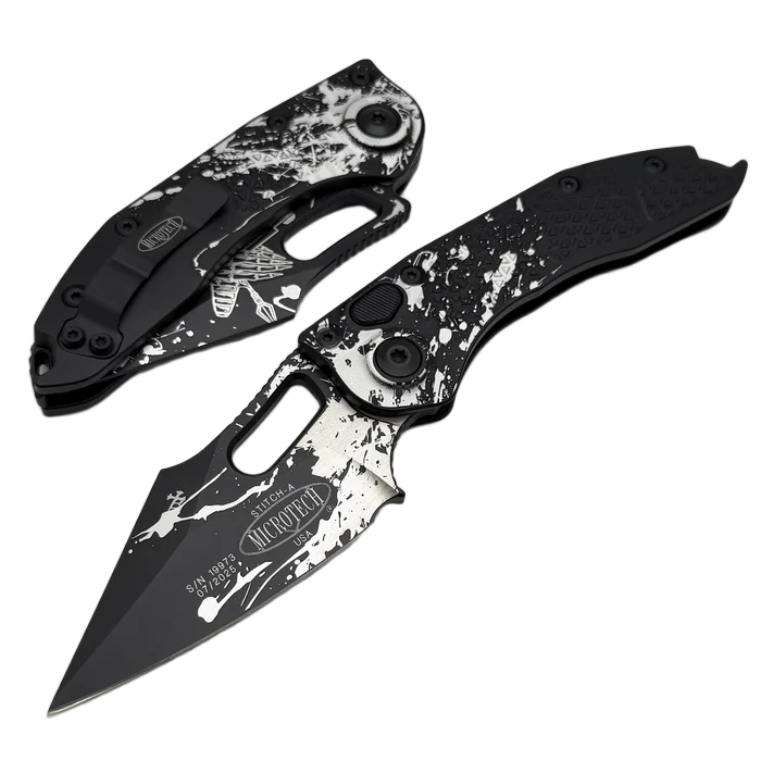 - Stitch-A S/E Battle Ready Aluminium, Battle Ready automatyczna wersja popularnego projektu Sebastijana Berenjiego z Borka Blades i firmy Microtech. Szerokie ostrze w kształcie harpuna, doskonałe materiały i legendarna jakość wykonania firmy Microtech!