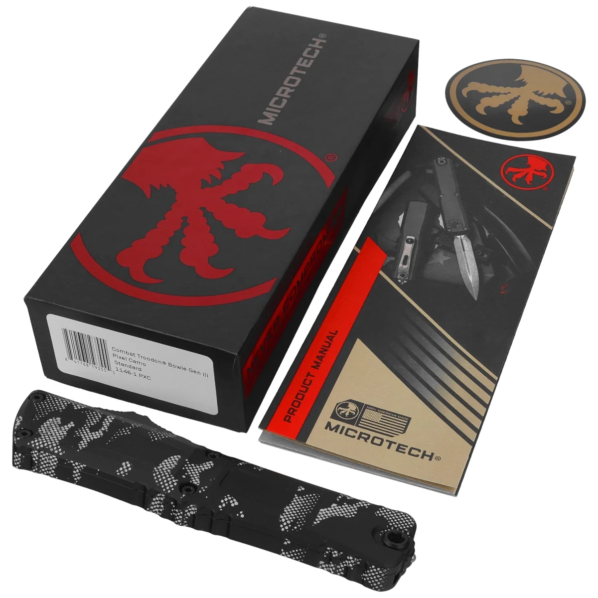 - Combat Troodon Gen III Bowie Signature Pixel Camo Aluminum, Pixel Camo największy OTF z serii Troodon. Zbudowany z myślą o szerokim spektrum zastosowań użytkowych oraz do walki w zwarciu. Pracujący w trybie D/A szybki mechanizm wysuwający ostrze.