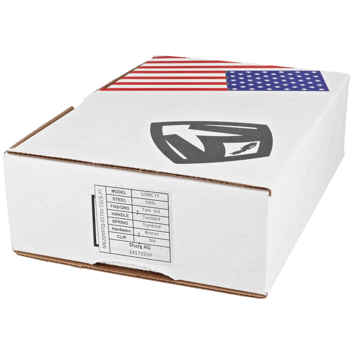 • USMC FF Tumbled Titanium, Bronze HW, Std Clip, Tumbled wzorowany na kultowym nożu US Marine Corps od MKT z ręcznie wykonanym szlifem wklęsłym. Olbrzym wśród folderów, nie bojący się żadnych zadań jakie może postawić przed nim nawet Apokalipsa!