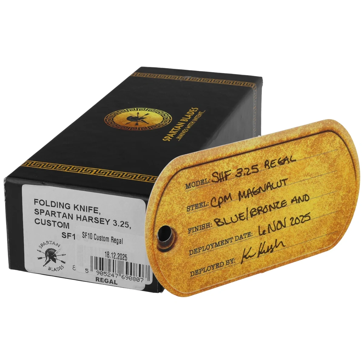Spartan Harsey Folder 3.25 Special Edition "Regal'' Titanium, Stonewashed. "Spartan Harsey Folder 3.25 Regal" lub "SHF 3.25 Regal" to limitowana edycja noża składanego, stworzonego według autorskiego projektu słynnego mistrza nożownictwa - Billa Harseya. Zdobywcy nagrody American Made Knife of The Year 2016 na targach nożowych Blade Show w Atlancie.