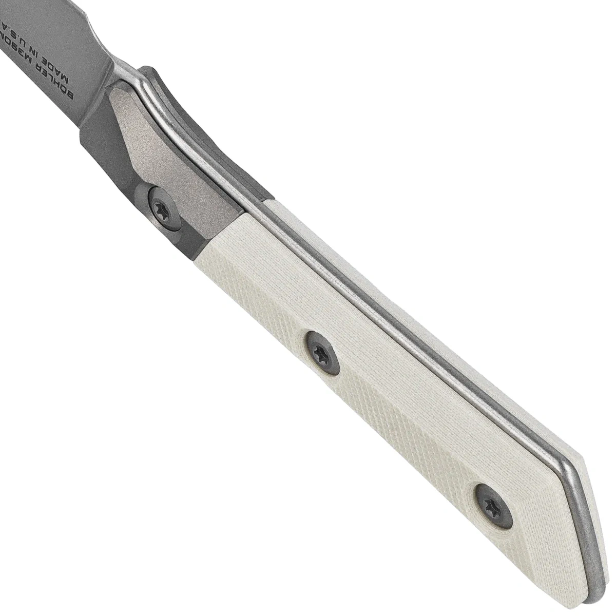 - Pairing Titanium Bolster/Ivory G10, Stonewashed – kuchenny nóż premium, łączący precyzyjną głownię ze stali M390MK z ergonomiczną rękojeścią z kompozytu G10 i tytanu. Wyjątkowe połączenie trwałości, precyzji i nowoczesnej estetyki.