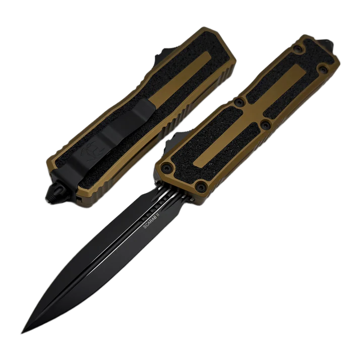 Nóż automatyczny OTF Microtech Scarab II Gen III D/E Tan Aluminium, Tactical M390MK by Tony Marfione (1280-1TA)