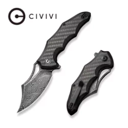 Chiro Carbon Fiber/Black G10, Damascus aggressive in design EDC folding knife. Excellent ergonomics, tactical design, double-sided clip and two ways to open the blade with a hole or flipper. Excellent price/quality ratio. Bestseller!